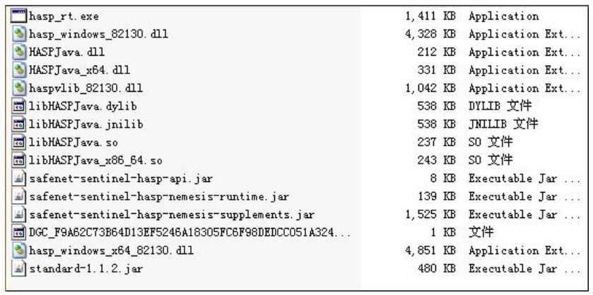 war 包加密后,產(chǎn)生的文件相對(duì)較少,此處只需要將原來(lái)移出的 jar 包和.class 文件重新加入,部署時(shí)將 safenet-sentinel-hasp-api-j2ee.jar 放入$CATALINA_HOME/lib 目錄下。